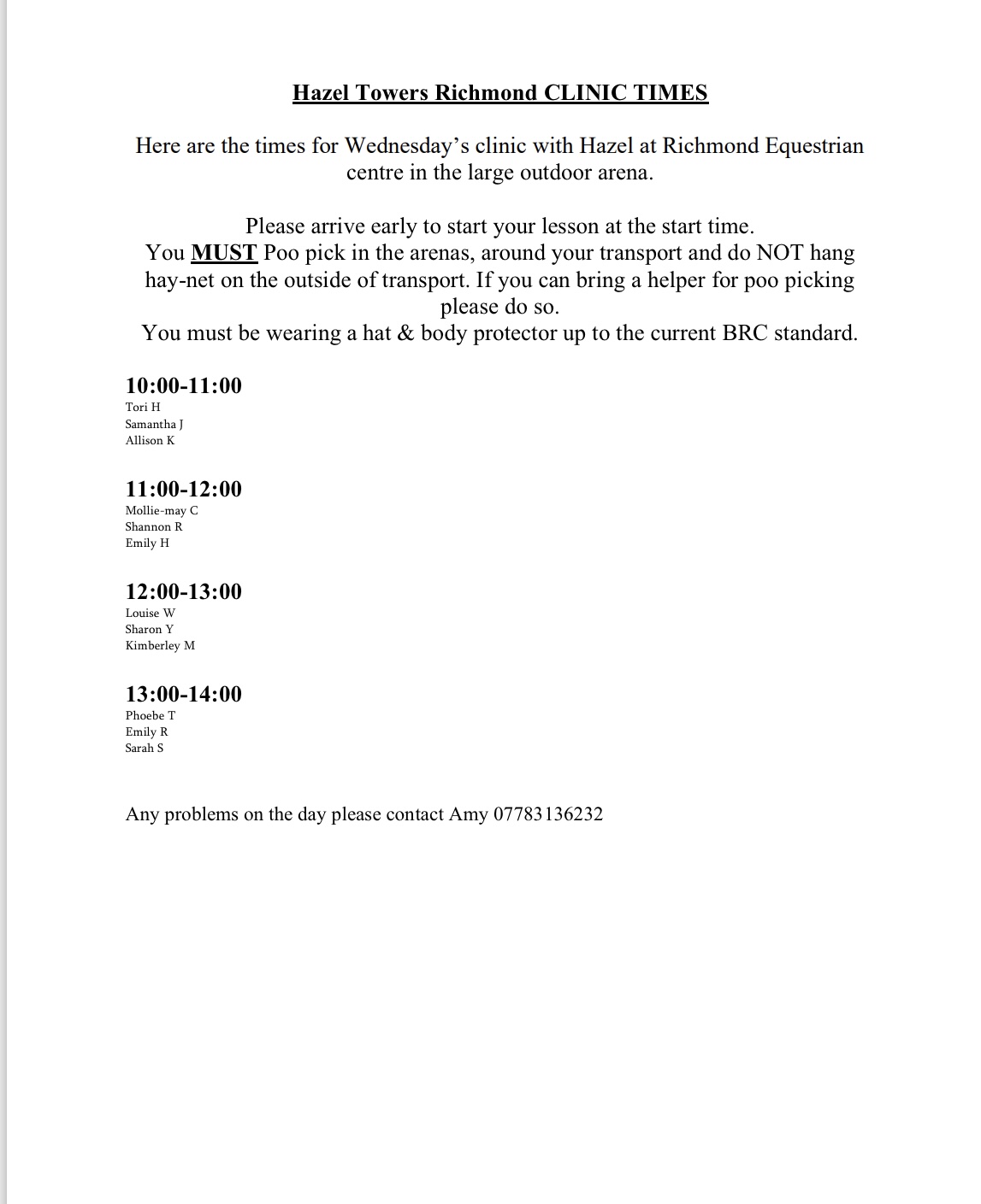 Contact Amy Pickard for queries amypickard4@me.com