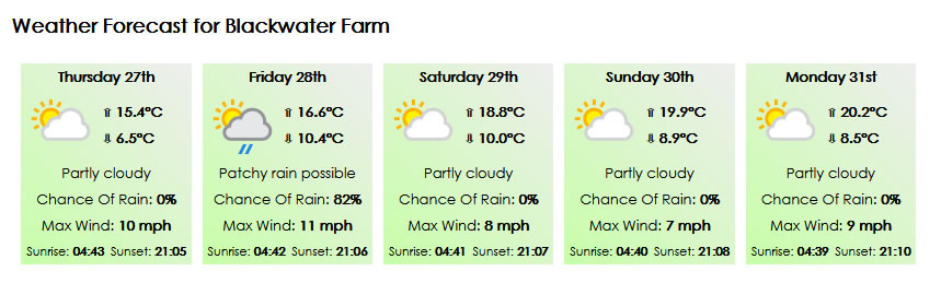 We have added this as we felt the weather can play a large factor in deciding whether to compete or which day to go schooling or what clothing to take/wear. Every little helps in making that tough horsey decisions.
